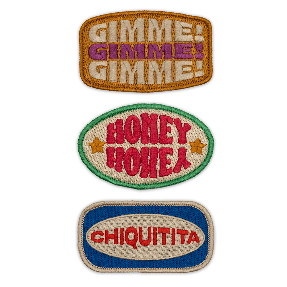 Set of 3 sew on patches. Chiquitita, Gimme, Gimme, Gimme and Honey Honey.